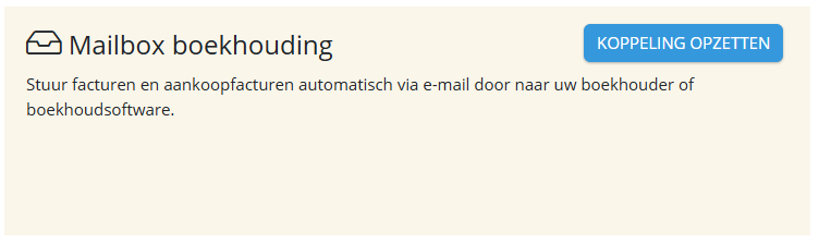 De koppeling tussen onze software en Billtobox verloopt via e-mail. Vraag het e-mailadres en onderwerp op die je hiervoor dient in te stellen bij Billtobox en stel deze in bij de koppeling "Mailbox boekhouding" in jouw account op ons platform.