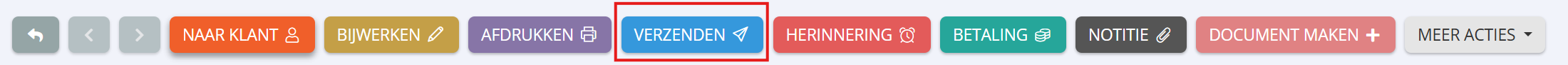 Om een factuur te verzenden druk je op de blauwe knop 'Verzenden' .