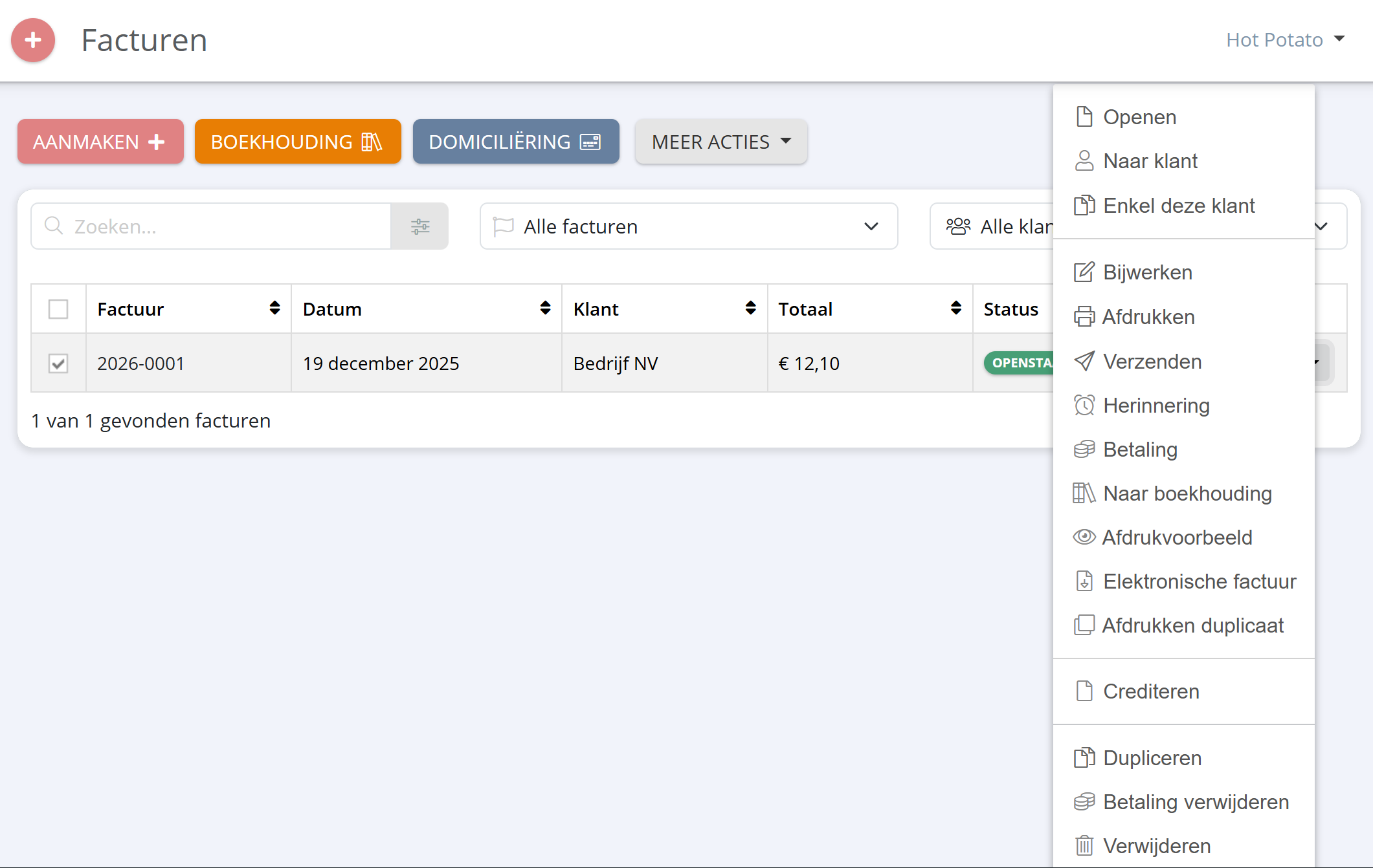 Zo heb je alle nodige opties bij de hand om je facturen eenvoudig op te volgen en correct te beheren.
